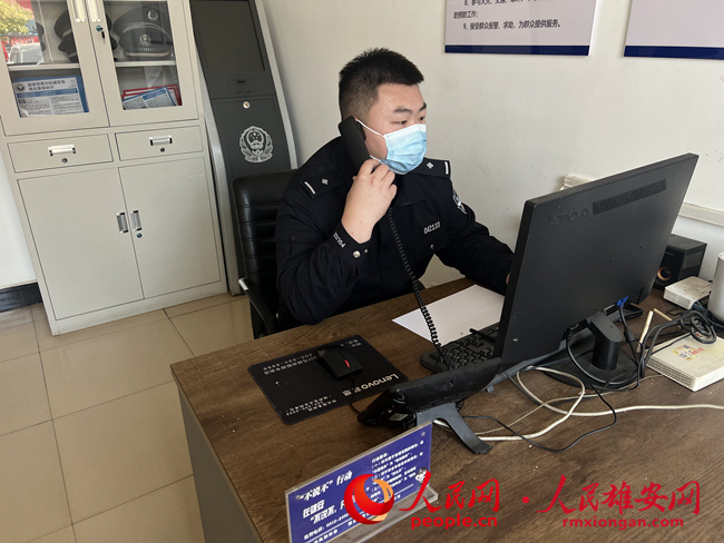 工作中的楊政。雄安新區公安局供圖