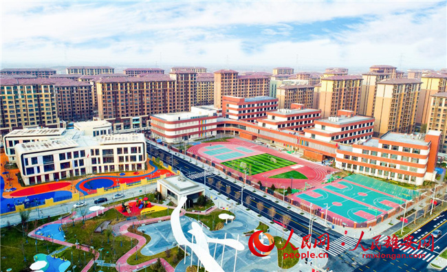容東片區c組團佳泰幼兒園和樂民小學航拍圖。人民網 宋燁文攝