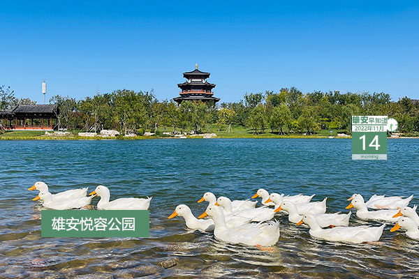 今天是2022年11月14日,星期一,天氣晴,-2℃~13℃。在封面和大家見面的是雄安悅?cè)莨珗@。