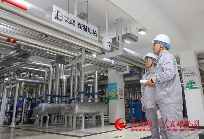 工作人員正在巡檢管道?!爸袊?guó)石化新星地?zé)帷本G源公司供圖