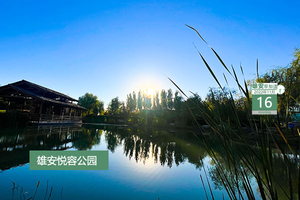 今天是2022年11月16日,星期三,天氣多云轉晴,-1℃~14℃。在封面和大家見面的是雄安悅容公園。