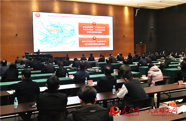 報告會以視頻會議形式召開,主會場設在雄安市民服務中心,三縣、雄安集團設分會場。新區黨工委委員、管委會副主任陳峰主持報告會。新區黨工委委員和其他廳級領導干部,新區各部門領導班子成員,建設指揮部辦公室、各片區指揮部分管負責同志,工人代表、教師代表、青年和學生代表、醫護人員代表、公安干警代表在主會場參會,三縣縣級領導干部,雄安集團班子成員和部門有關負責同志在分會場參加會議。