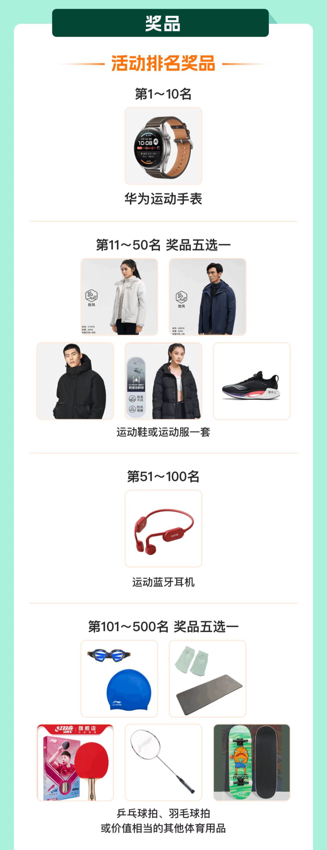 活動結束后運動量達到2000大卡的用戶即可參與抽獎,每人共有三次抽獎機會。獎品將于活動結束后15個工作日內發放。