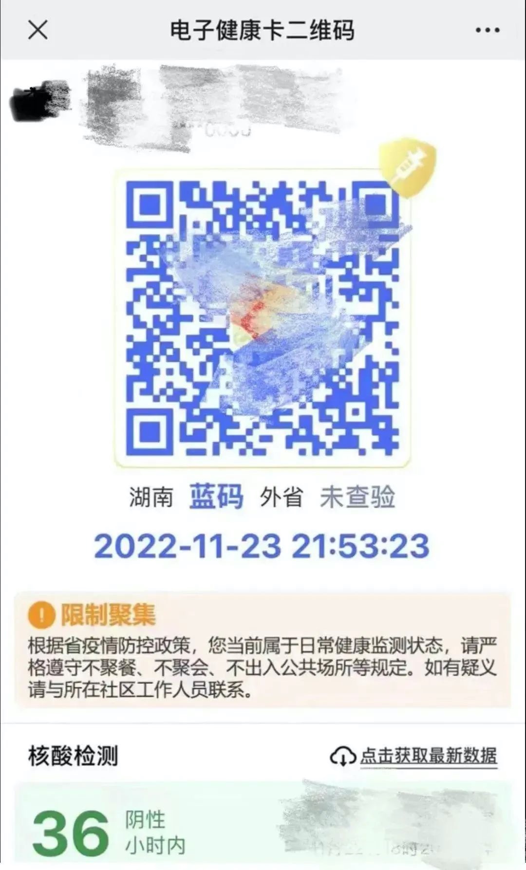3、外省入(返)湖南人員自抵湘之日起5天內(nèi),“湖南省居民健康碼”會(huì)賦藍(lán)碼(紅黃碼除外),并彈窗提示“入(返)湘人員未滿5天”。藍(lán)碼人員正常工作、看病就醫(yī)、孩子上學(xué)、乘坐公共交通工具等不受影響,各地不得加以限制。