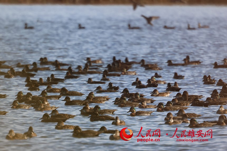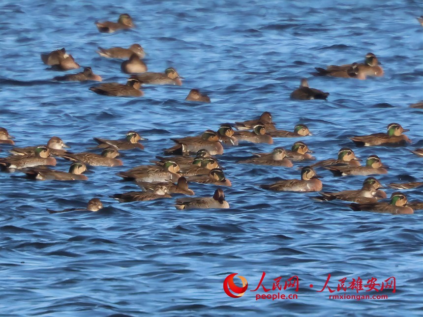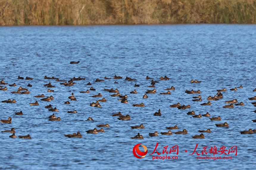 人民網雄安12月2日電 在雄安新區(qū)雄縣近日組織開展的野生鳥類監(jiān)測活動中,愛鳥護鳥志愿者在白洋淀監(jiān)測到數百只國家二級重點保護野生動物花臉鴨集群活動的影像。