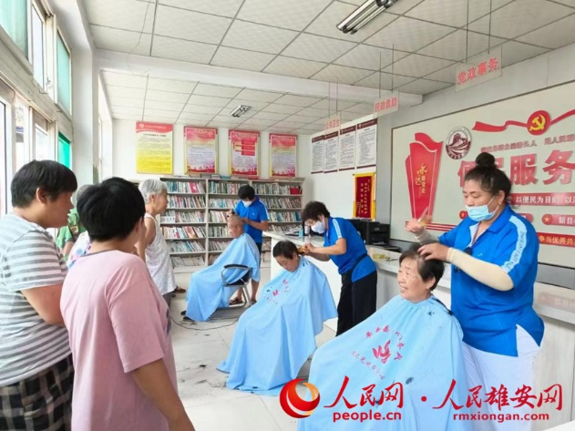 “剪”——安新縣淀之光徒步活動中心愛心服務隊為圈頭鄉光淀村村民義務理發。圖為他們第8次開展義務理發活動。安新縣文明辦供圖
