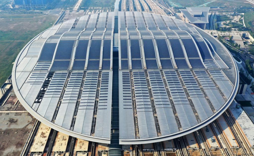 京雄城際鐵路雄安站站頂分布式光伏電站。新華社記者朱旭東 攝