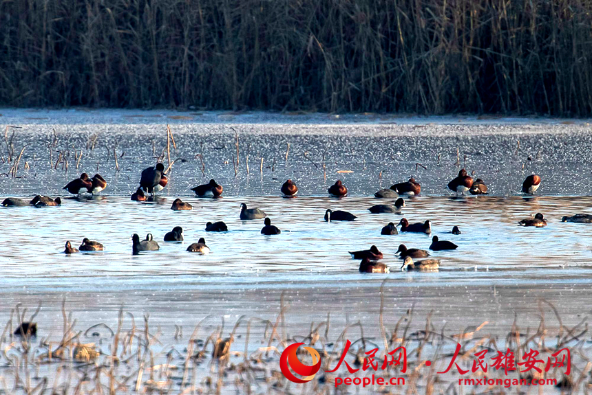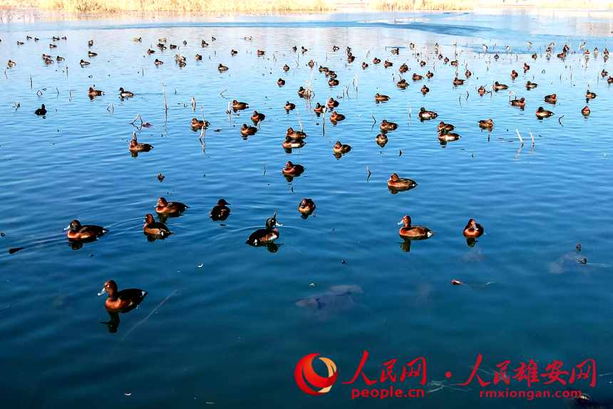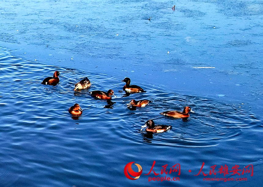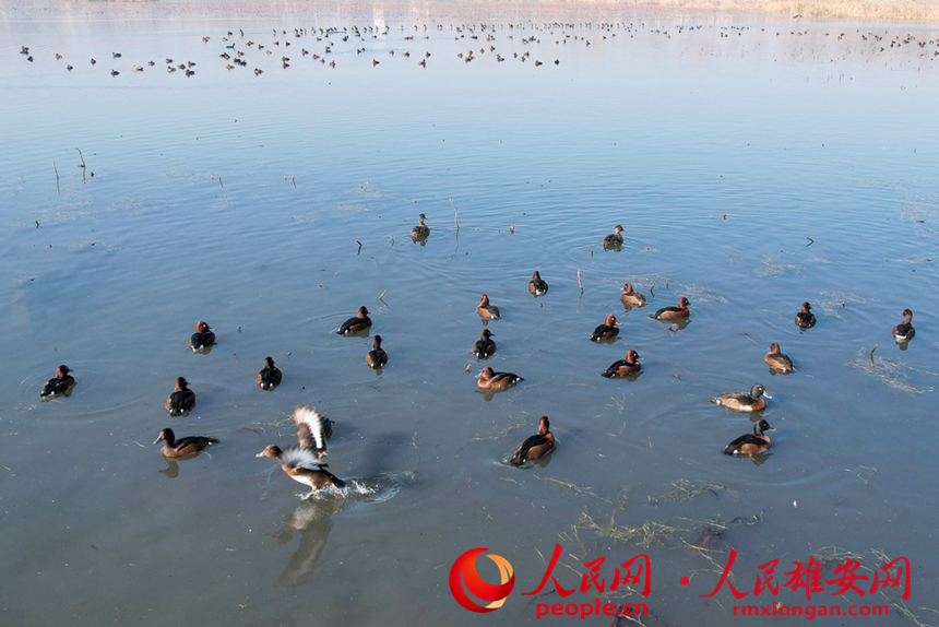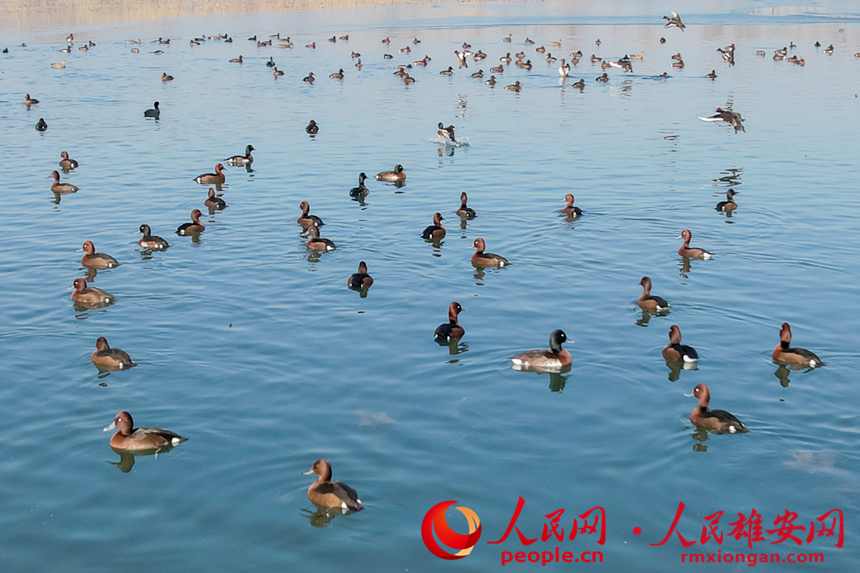 人民網雄安12月8日電 (劉師豪)來自雄安新區(qū)安新縣的愛鳥護鳥志愿者,近日在白洋淀一處未結冰的水域內拍攝到了一大群青頭潛鴨、白眼潛鴨、骨頂雞等鳥類,它們時而潛入水中覓食,時而揮動翅膀躍出水面,十分悠閑。據志愿者稱,保守估計,此次發(fā)現的青頭潛鴨數量在90只以上,是白洋淀有青頭潛鴨記錄以來數量最多的一次。