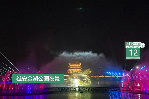 今天是2022年12月12日,星期一,天氣晴,-4℃~6℃。在封面和大家見面的是雄安金湖公園夜景。