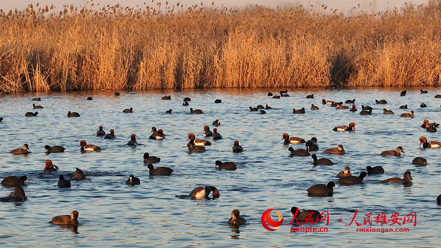 人民網(wǎng)雄安12月13日電 冬日的暖陽(yáng)下,白洋淀碧波蕩漾,優(yōu)良的水質(zhì)和豐茂的水草,吸引了上千只赤嘴潛鴨在這里越冬,它們時(shí)而暢游嬉戲 ,時(shí)而潛水覓食,姿態(tài)萬(wàn)千又呆萌可愛(ài)。這是來(lái)自雄安新區(qū)雄縣的愛(ài)鳥(niǎo)護(hù)鳥(niǎo)志愿者在白洋淀記錄到的影像。