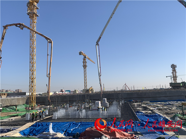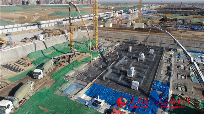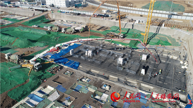 雄東片區B單元安置房項目二標段首段主樓筏板順利澆筑砼現場。中國雄安集團供圖