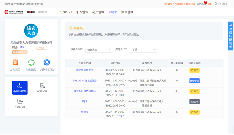 雄安人力資源市場(chǎng)招聘展位預(yù)約流程