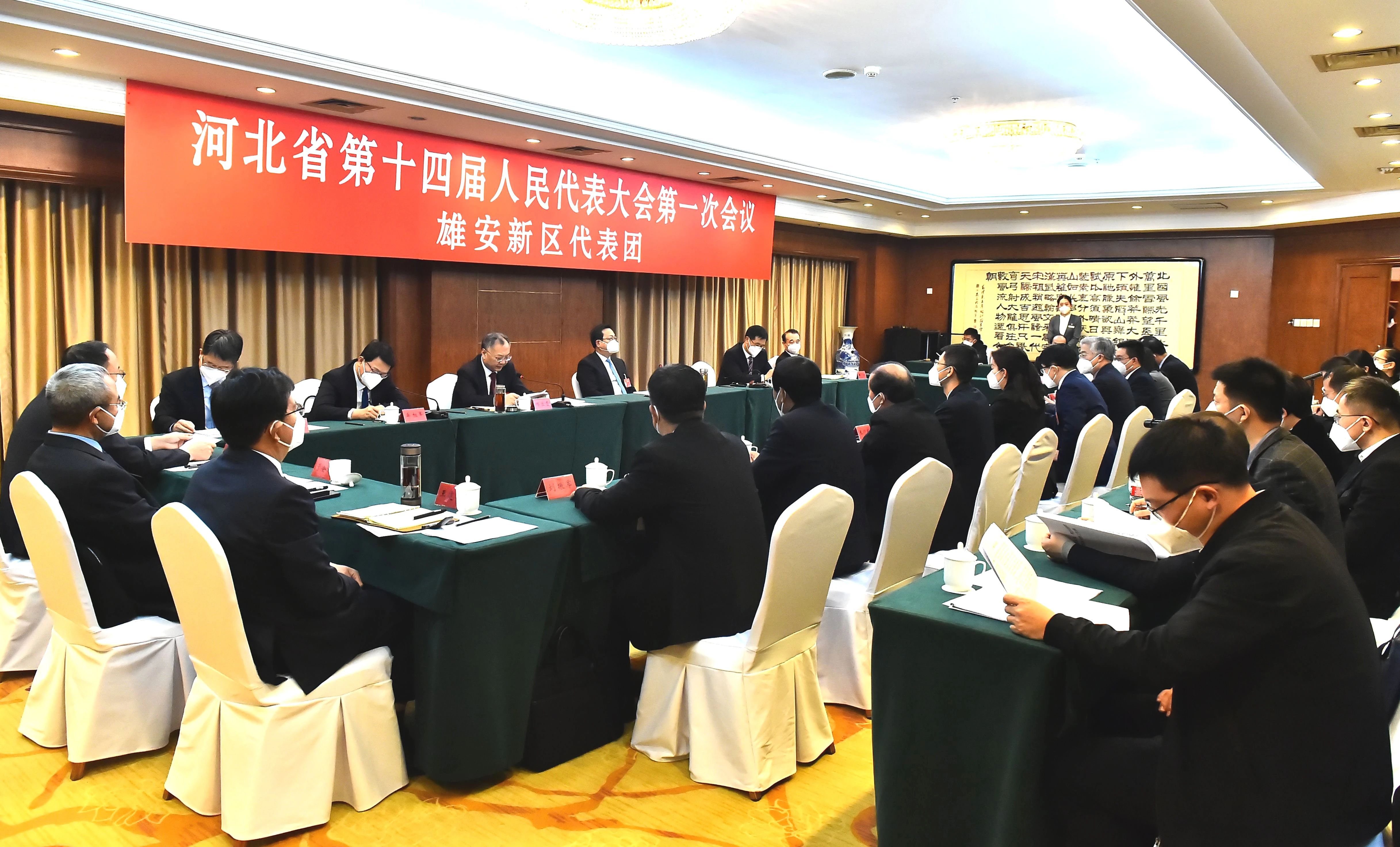 出席省十四屆人大一次會議的雄安新區代表團舉行全體會議。劉向陽攝