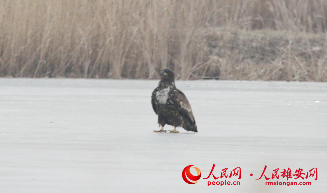 在白洋淀發現的白尾海雕(冰面上)。田曾睿攝