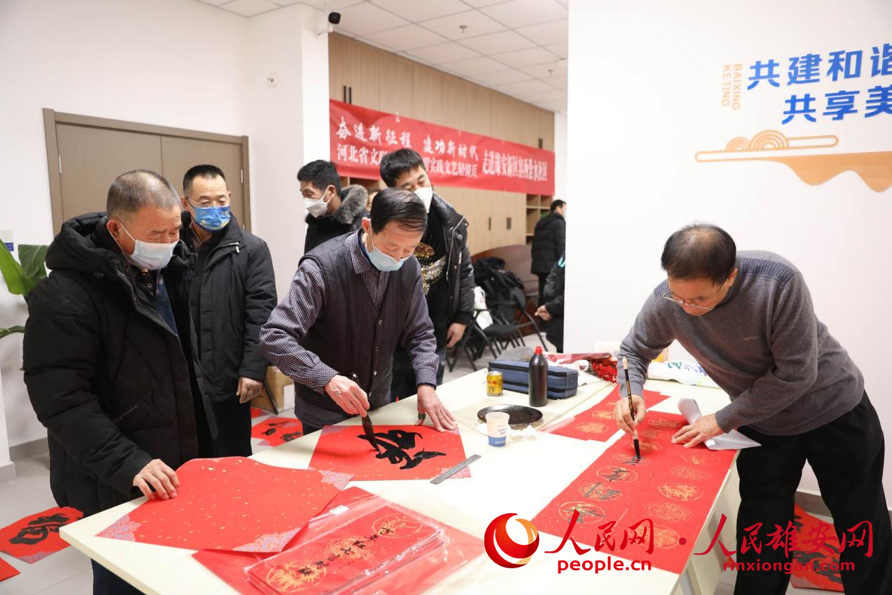 容西片區回遷群眾迎新春寫春聯、“福”字。楊華龍攝