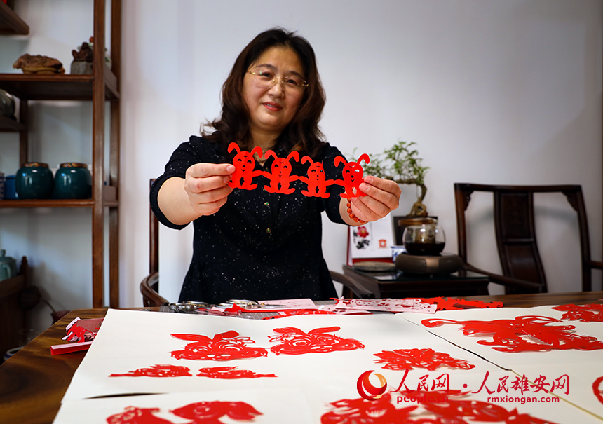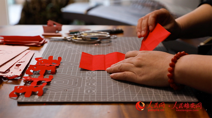 人民網(wǎng)雄安1月19日電?(宋燁文)1張紅紙、2把剪刀、3寸桌墊,一開一合不出3分鐘,一串“團(tuán)結(jié)兔”便在王愛的手下誕生。紅紅火火的“團(tuán)結(jié)兔”可愛又喜慶,洋溢著濃濃年味兒。