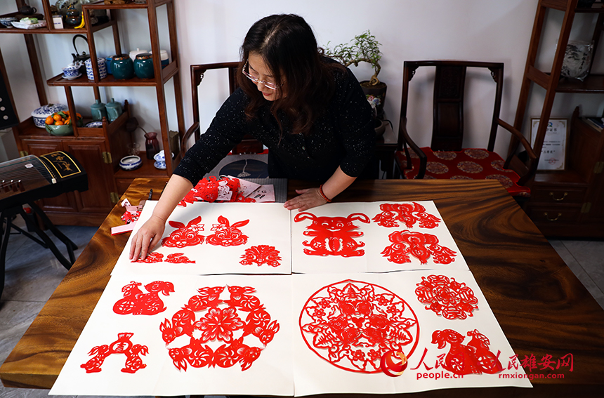 兔年春節(jié)前夕,家住雄安新區(qū)容城縣的王愛憑借一雙巧手,創(chuàng)作出十余種“兔紙”。王愛的愛人驕傲地介紹:“她是容城縣職教中心的美術(shù)老師,平時(shí)就酷愛剪紙,在學(xué)校創(chuàng)辦了剪紙社團(tuán),還帶學(xué)生在市、省、全國的剪紙比賽中獲過獎(jiǎng)。”