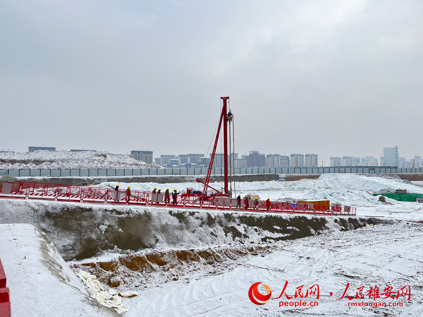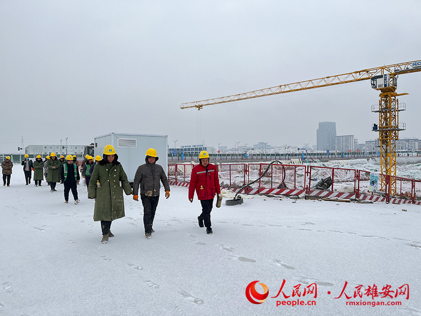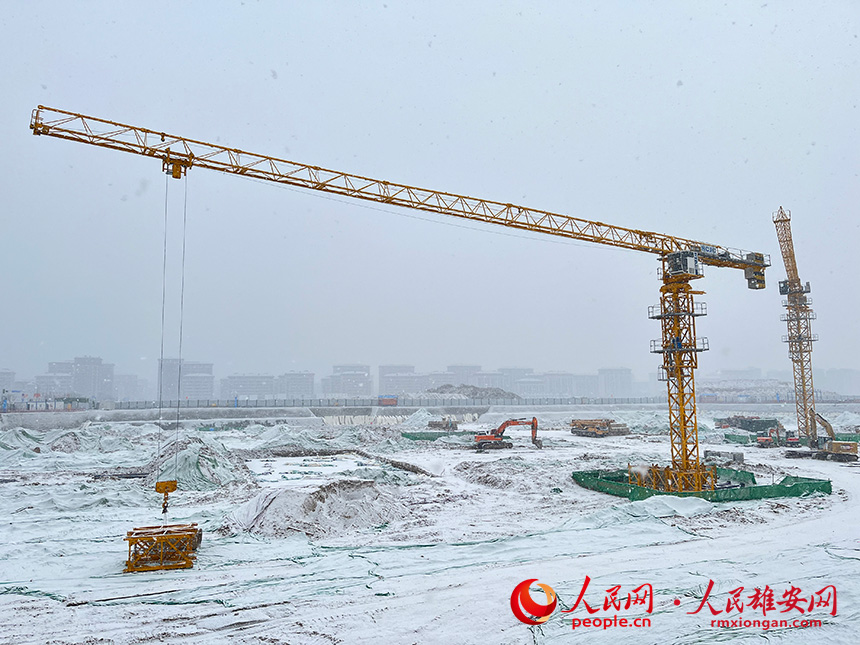 新年初雪天中的雄安建設(shè)工地。中建三局北京公司供圖