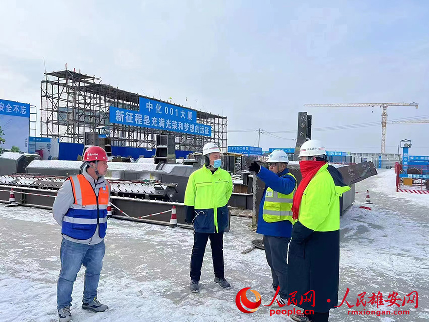 工作人員正在中國中化雄安總部建設(shè)現(xiàn)場巡查。中國中化總部大廈項目供圖