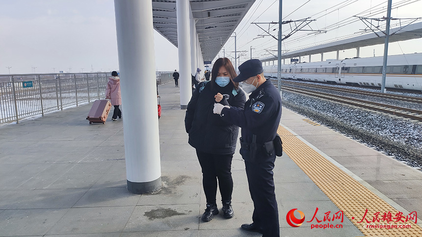 北京鐵路公安局石家莊公安處霸州西站派出所白洋淀站駐站民警堅守在崗位上。北京鐵路公安局石家莊公安處霸州西站派出所供圖