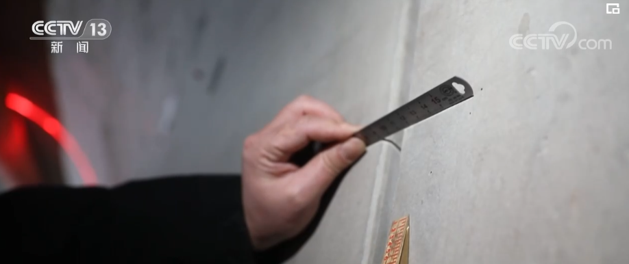 北京大興機場至雄安新區快線一標段三分部生產經理 鄧友濤:隧道里邊的管片要求拼裝平整嚴實,不能有較大的錯臺,你看我把這個鋼板尺靠在這個兩塊板的接縫處,如果管片錯臺,鋼板尺下面就會有間隙,你們可以利用這塞尺塞進去來測它的錯臺量??梢钥吹剑F在鋼板尺下面沒有間隙,塞尺塞不進去,說明這個管片拼裝得一毫米的誤差都沒有。之前有過拼裝出來有一毫米的錯臺,我們也要求把這個板片拆掉之后重新拼裝,這么一拆一裝就是兩個小時,我們就是靠著這種嚴格的要求來保證我們的雄安質量。