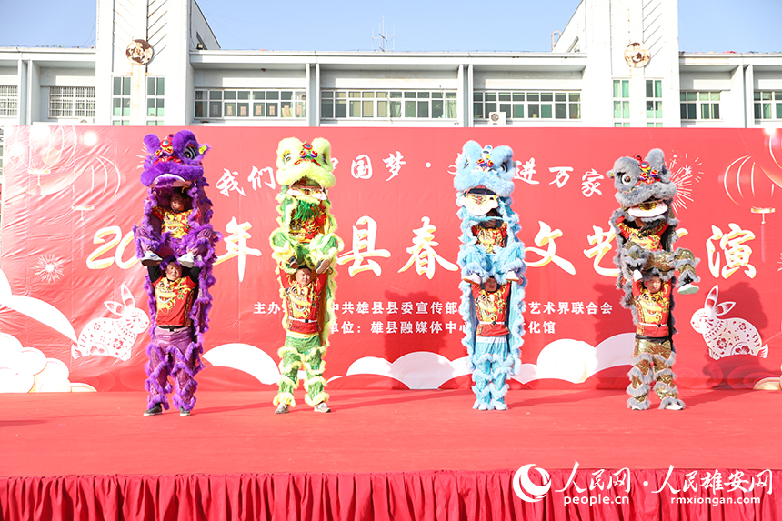 雄縣東安各莊村舞獅表演。人民網(wǎng) 楊華龍攝