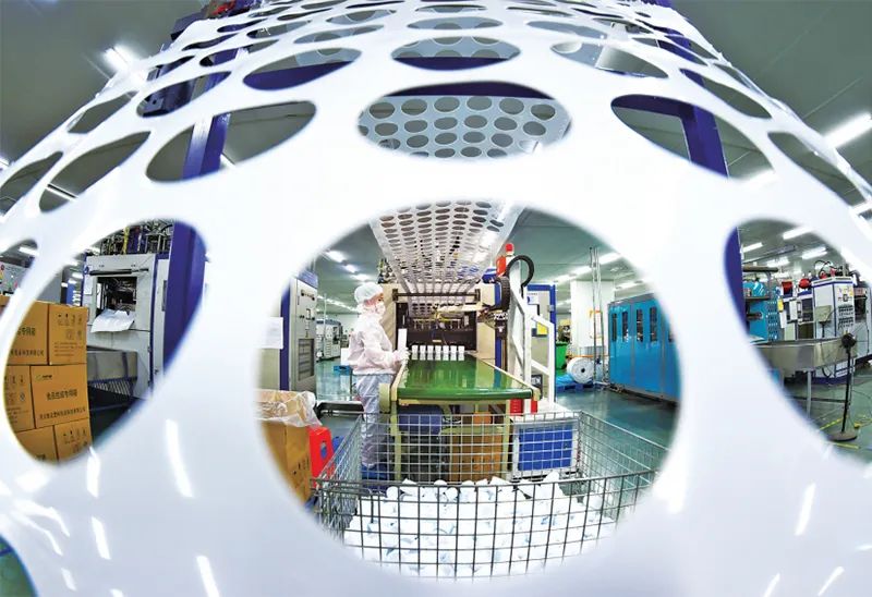 近年來,河北省抓住全球產業結構調整過程中孕育的新機遇,狠抓傳統產業改造升級,推動戰略性新興產業融合集群發展,不斷提高發展的質量效益。圖為2022年10月12日,在河北省廊坊市文安經濟開發區智能裝備產業園河北鯤運塑料包裝科技有限公司無塵車間內,企業員工在生產線上忙碌。?河北日報記者 趙永輝/攝