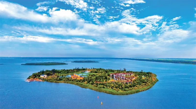 衡水湖國家級自然保護區經過實施濕地修復與保護、河網綜合整治、環湖林地修復等多項工程,綜合生態環境恢復成效顯著,成為京津冀重要的生態環境支撐區、國家生態旅游示范區。圖為2022年7月25日,藍天白云下的衡水湖。?河北日報記者 田明/攝