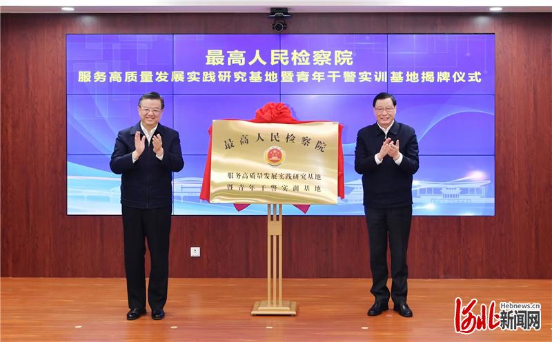 2月2日,最高人民檢察院黨組書記、檢察長張軍,黨組副書記、副檢察長應勇率最高人民檢察院調研組一行到雄安新區調研,并看望慰問基層一線檢察干警。河北省委書記、省人大常委會主任倪岳峰參加有關活動。這是應勇、倪岳峰為最高人民檢察院服務高質量發展實踐研究基地暨青年干警實訓基地揭牌。河北日報記者趙海江攝