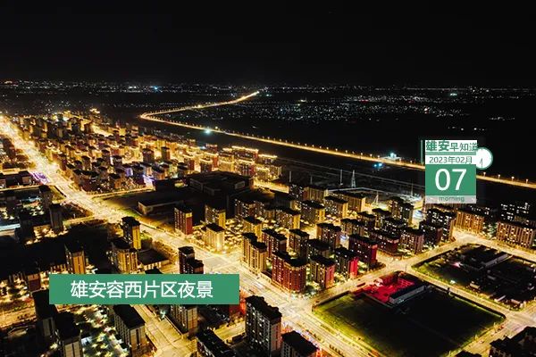 今天是2023年2月7日,星期二,天氣晴,-6℃~7℃。在封面和大家見面的是雄安容西片區夜景。
