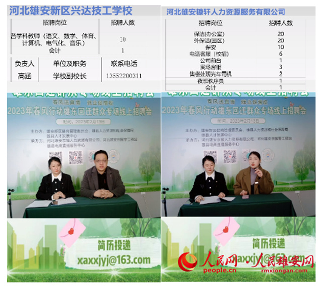 人民網雄安2月13日電 (李雪晴)據雄安新區雄縣消息,今天上午舉辦的“雄縣2023年春風行動雄東回遷群眾專場線上招聘會”,提供就業崗位300余個,吸引了3570人參與。