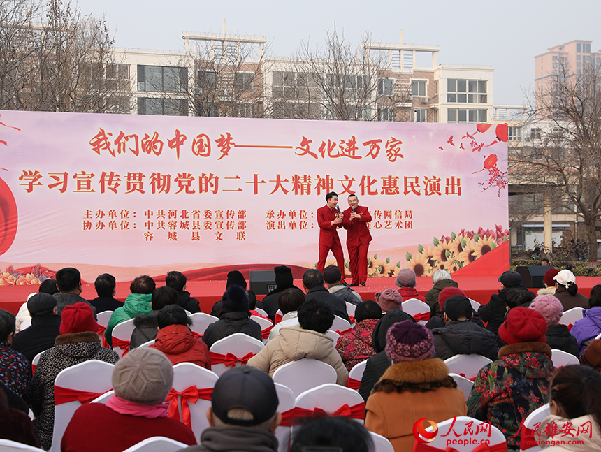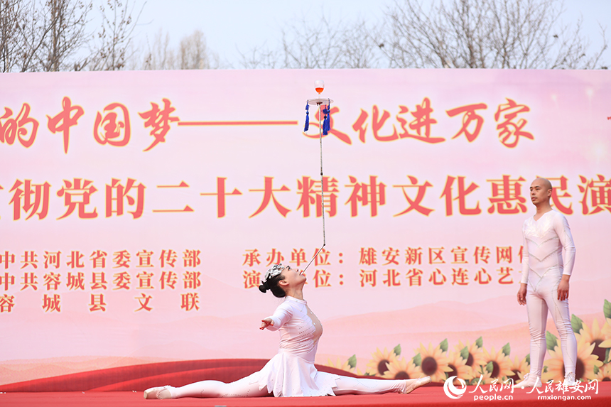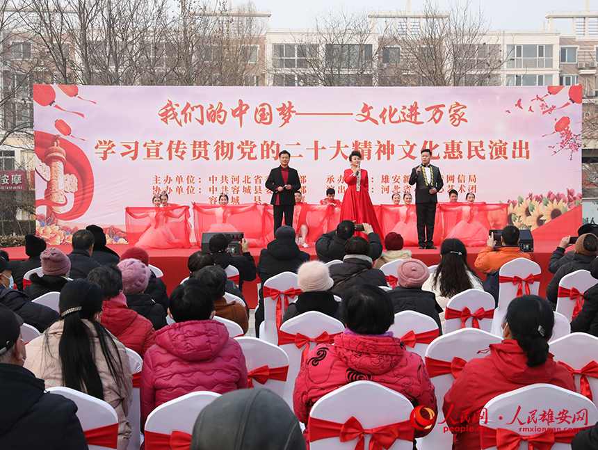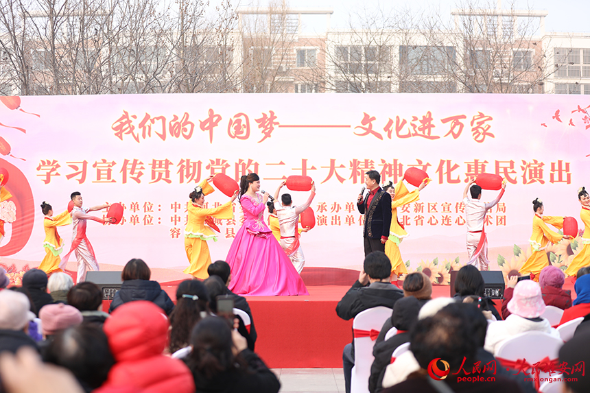 人民網雄安2月18日電 (王紅 楊華龍)“我們的中國夢——文化進萬家”學習宣傳貫徹黨的二十大精神文化惠民演出活動2月17日走進雄安新區,并于容城縣新容花園廣場舉行了首場演出,為新區群眾奉獻了一場精彩的文化盛宴。據了解,后續還將在容東片區、容西片區和雄縣、容城、安新三縣鄉鎮舉辦共計36場演出活動。