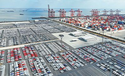 江蘇省太倉港外貿汽車堆場,一批即將出口的汽車整裝待發。