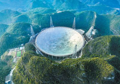 坐落于貴州省平塘縣的“中國天眼”射電望遠鏡。
