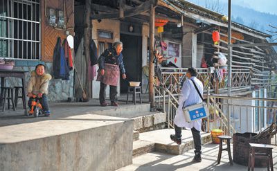 四川省北川羌族自治縣曲山鎮石椅村,村醫入戶走訪重點人群,提供醫療服務。