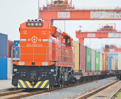 河南省鄭州市,中歐班列從中國鐵路鄭州局集團有限公司圃田站啟程,滿載貨物駛向海外。