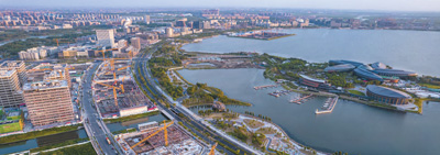 上海自貿試驗區臨港新片區滴水湖畔,塔吊林立,多個重點項目建設如雨后春筍般拔地而起。