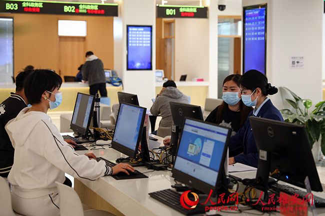 圖為辦事群眾通過“一表制填報”辦理業(yè)務。人民網(wǎng) 宋燁文攝