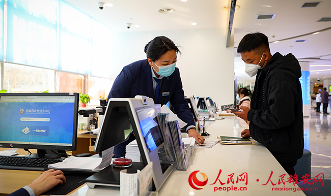 圖為辦事群眾在容城縣政務服務中心辦事大廳咨詢業(yè)務。人民網(wǎng) 宋燁文攝