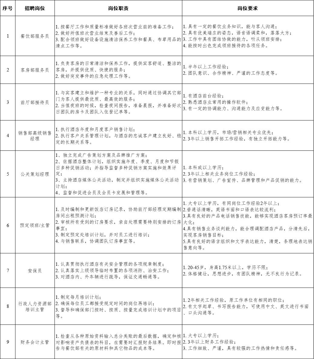 河北雄安人力資源服務有限公司酒店項目員工招聘公告