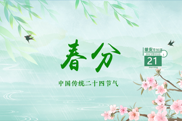 今天是2023年3月21日,星期二,天氣多云轉陰 ,9~21℃。今天是二十四節氣之一的春分,春分包含兩種含義:一種是“季節平分”,因為春分處于立春與立夏中間,正好平分了整個春天;第二種是“晝夜平分”,春分時,太陽直射赤道,這樣便形成了晝夜時間等長的特征。