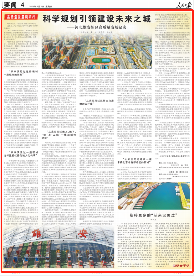 “從來沒見過這樣編制一座城市的規劃。”“從來沒見過一座新城這樣重視優秀傳統文化傳承。”“從來沒見過地上、地下、‘云’上‘三城’一體規劃和建設。”“從來沒見過這樣大力度治理白洋淀。”“從來沒見過建設一座承接北京非首都功能的新城。”
