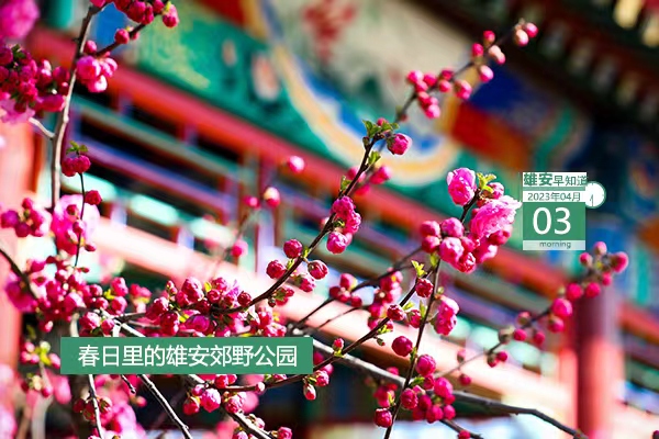 今天是2023年4月3日,星期一,天氣陰轉小雨,8~18℃。在封面和大家見面的是春日里的雄安郊野公園。