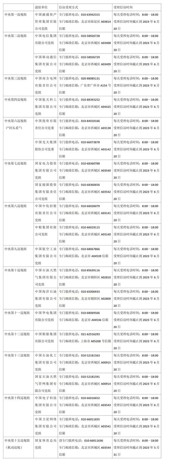 1、日前,二十屆中央第一輪巡視的15個巡視組開始陸續(xù)進(jìn)駐被巡視單位黨組織開展巡視工作。第二批集中進(jìn)駐的21家被巡視單位信訪受理方式已經(jīng)公布。