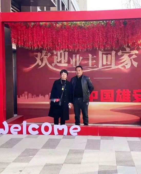 2021年12月,鄭運年與妻子在容東安置區(qū)的南文營社區(qū)回遷房交付點合影留念