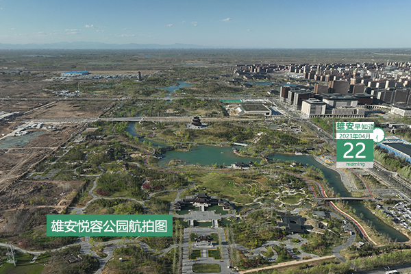今天是2023年4月22日,星期六,天氣陰 ,6~12℃。在封面和大家見面的是雄安悅容公園航拍圖。