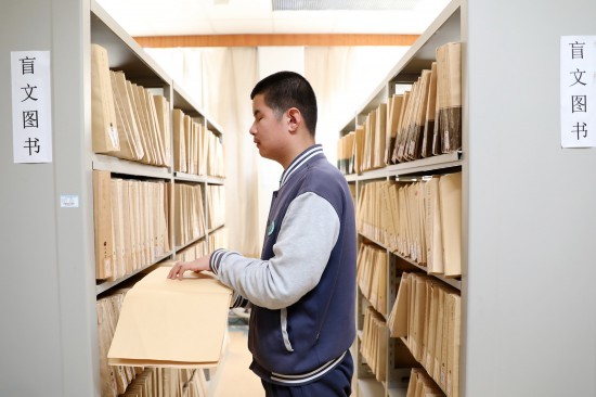 對于普通人來說,眼睛是觀察外界的器官,但對于視障人群而言,閱讀是他們觸摸世界的窗口。4月19日,濟南特殊教育中心的視障學生通過盲文摸讀,享受閱讀帶來的樂趣。人民網 劉祺攝