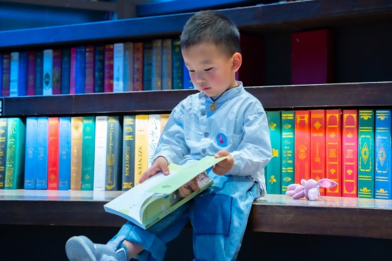 4月20日,在貴州貴陽鐘書閣書店內,一小男孩安靜的坐在角落里看繪本。人民網 陽茜攝