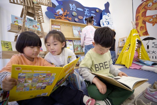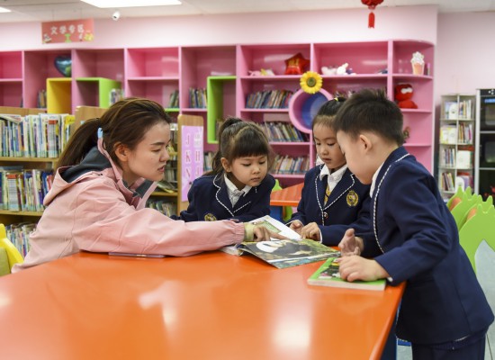 4月18日,雄安新區青禾幼兒園的小朋友正在閱讀繪本。該園打造了“公益繪本館”和“親子閱讀開放日”,為孩子們營造了良好的閱讀環境和氛圍。人民網 楊華龍攝