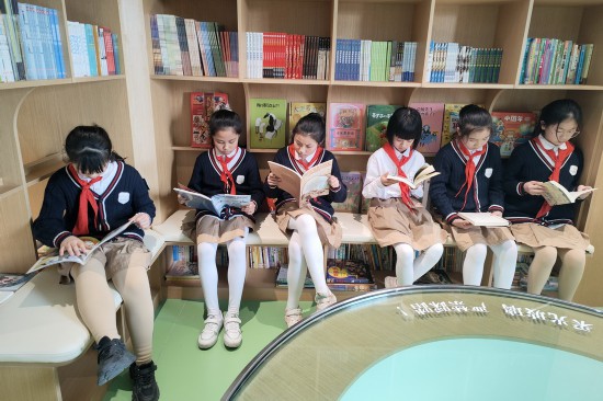 4月19日,湖北省天門市萬林實驗小學大力開展“圖書館閱讀”活動,學生在圖書館自由閱讀,開闊視野,涵養心性,充分享受閱讀帶來的快樂。人民網 張雋攝
